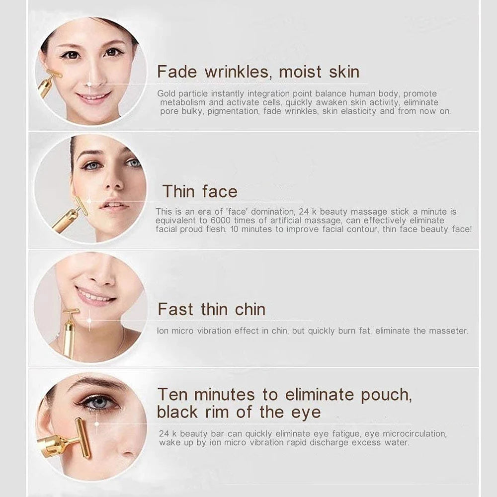 Look 10 Years Younger in Just 5 Minutes Daily - 24K Gold Face Massager with 6,000 Vibrations Per Minute!